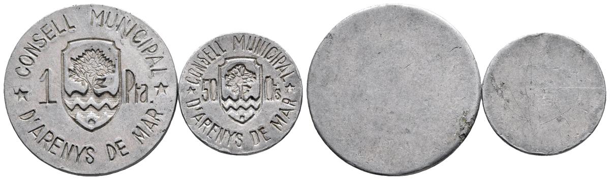 D´ARENYS DE MAR. Serie completa 50 cts y 1 pta. Cal-3. Al-La. EBC-. Escasa.