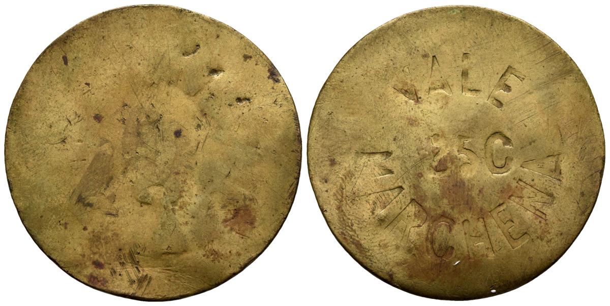 MARCHENA. 25 Céntimos. Guerra Civil. Cal-10. Latón. 11,24g. Alabeada. MBC-. Escasa.