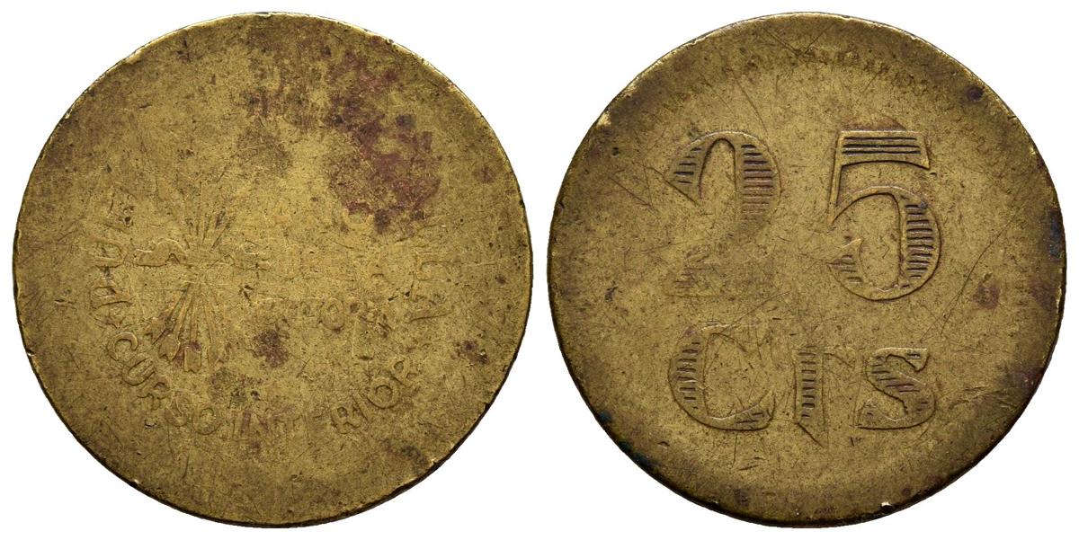 PUEBLA DE CAZALLA. 25 Céntimos. Guerra Civil. Cal-15. Latón. 4,08g. BC/MBC-. Muy escasa.