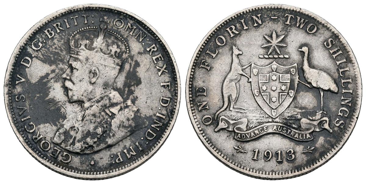 AUSTRALIA. 1 Florin. 1913. Km#27. Ar. 11,24g. Manchas oscuras. MBC-. Escaso.