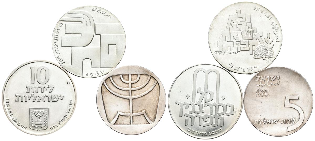 ISRAEL. Lote compuesto por 3 monedas. 5 Lirot 1958. km#21, 10 Litot 1969. Km#53 y 10 Lirot 1972. Km#61.1. Ar. EBC. A EXAMINAR.