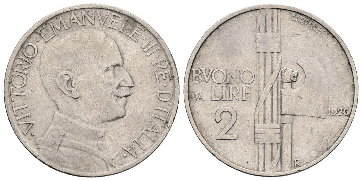ITALIA. Vittorio Emanuele II. 5 Lire. 1926. Km#63; Pagani 744; MIR 1143d (R). Ni. 9,85g. MBC.