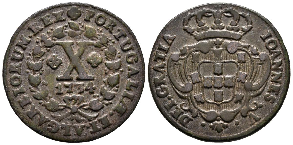 PORTUGAL. Joao V. 10 Reis. 1734 D. Gomes 34.12. Ae. 12,07g. MBC+.