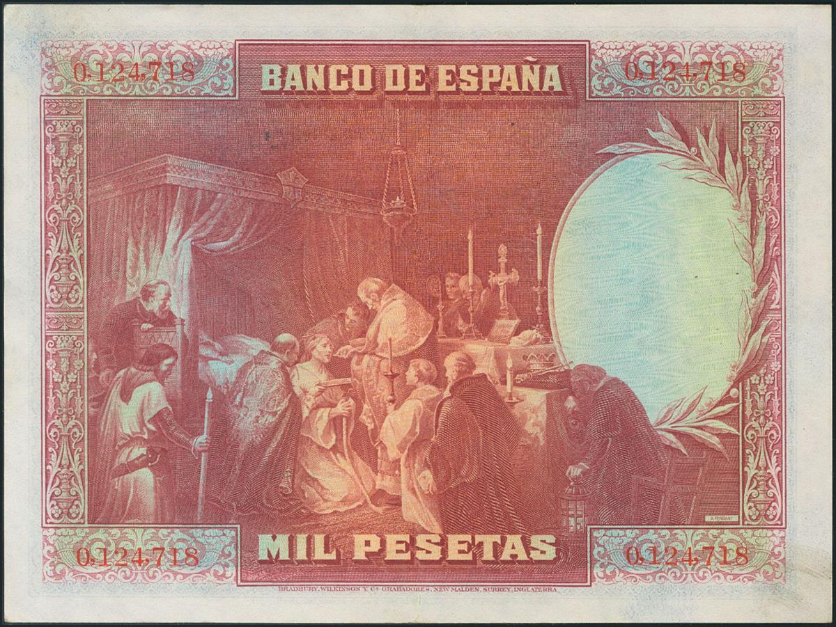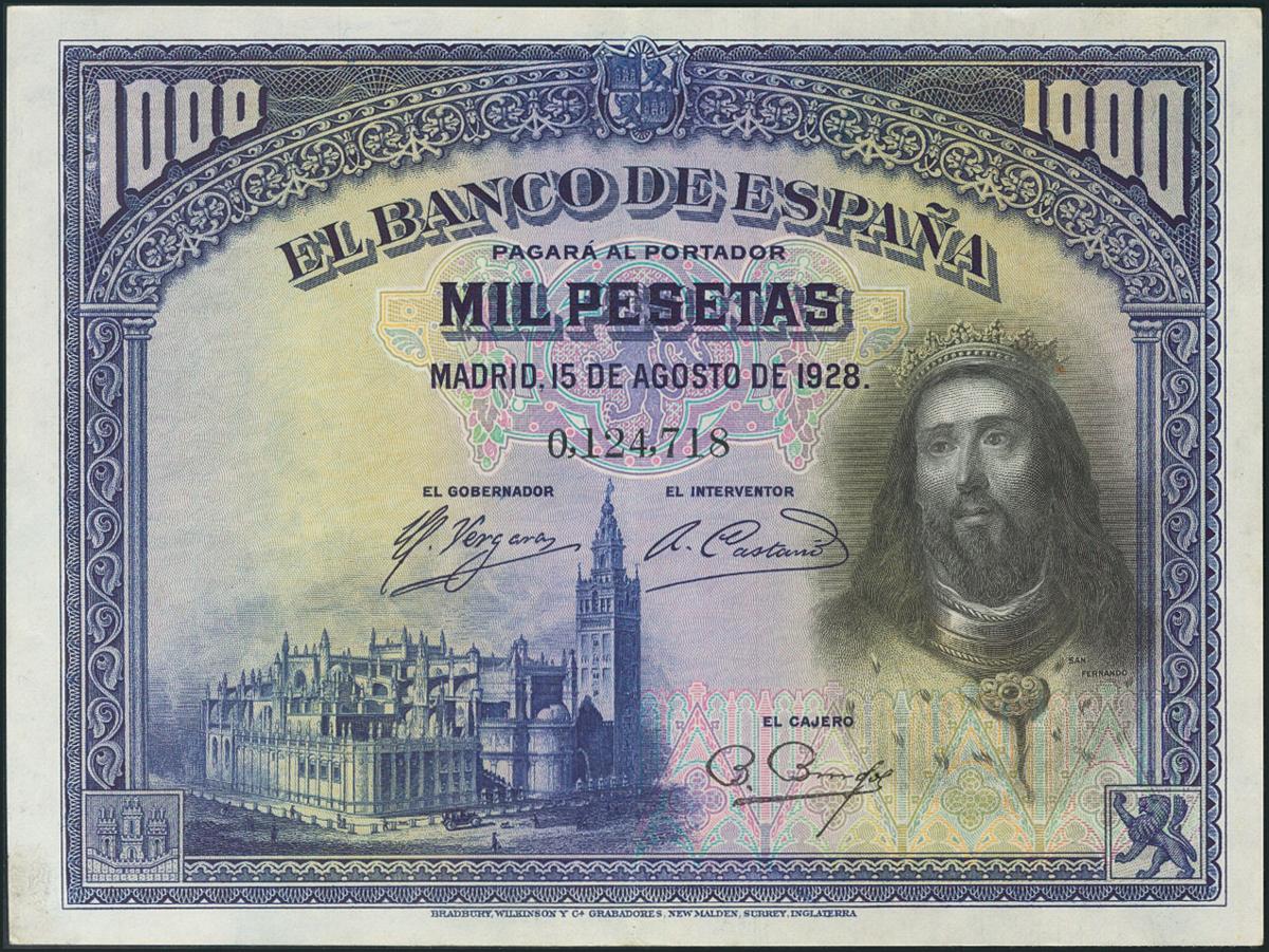1000 Pesetas. 15 de Agosto de 1928. (doblez vertical)(Edifil 2017: 357). MBC+.