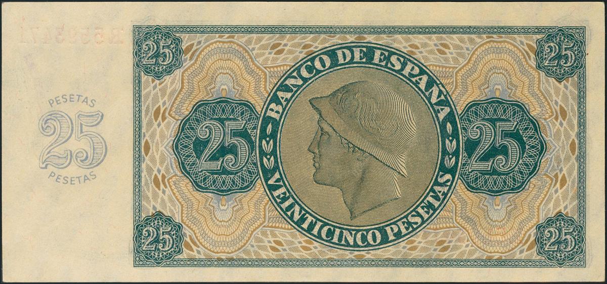 25 Pesetas. 21 de Noviembre de 1936. Banco de España, Burgos. (Edifil 2017: 419a). SC-.