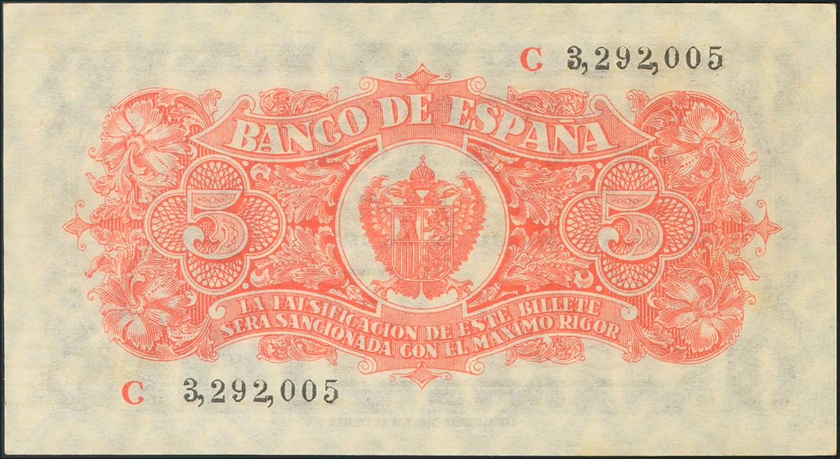 5 Pesetas. 18 de Julio de 1937. Banco de España, Burgos. (Edifil 2017: 424a). SC-.
