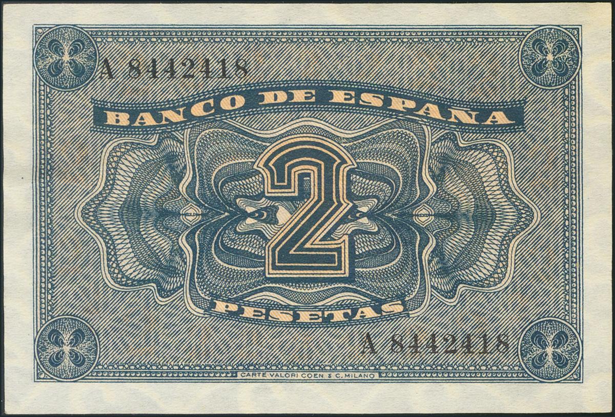 2 Pesetas. 12 de Octubre de 1937. Serie A. (Edifil 2017: 426). SC-.