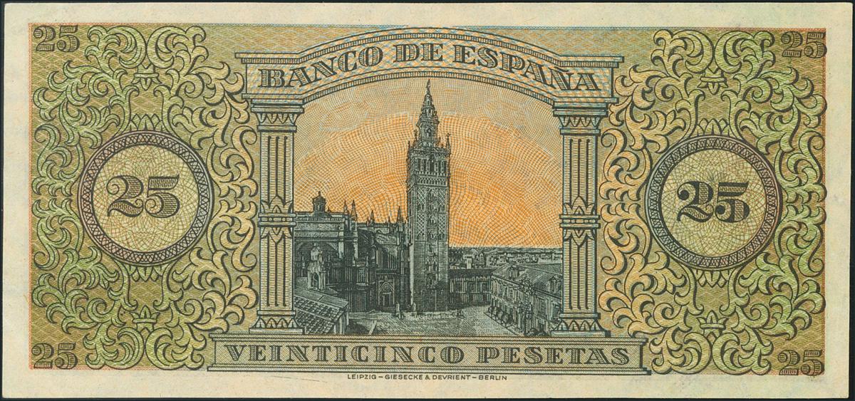 25 Pesetas. 20 de Mayo de 1938. Banco de España, Burgos. Serie A. (Edifil 2017: 430). EBC+.