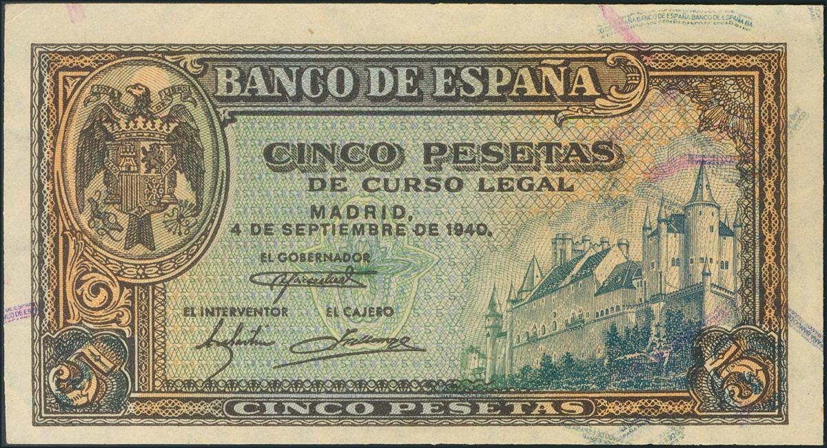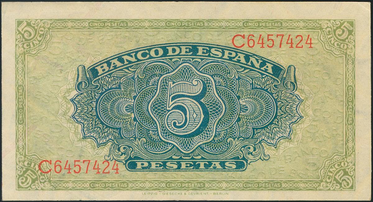 5 Pesetas. 4 de Septiembre de 1940. Serie C. (Edifil 2017: 443a). EBC+.