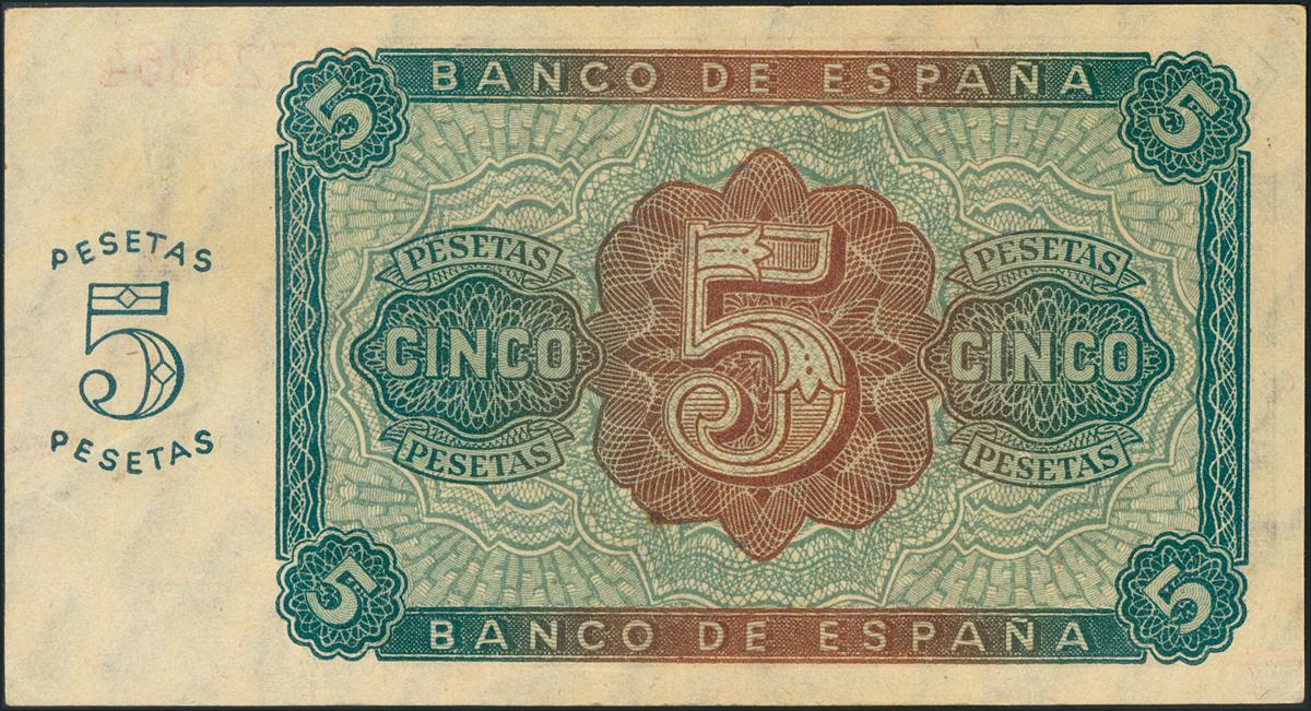 5 Pesetas. 10 de Agosto de 1938. Banco de España, Burgos. Serie J. (Edifil 2017: 435a). EBC+.