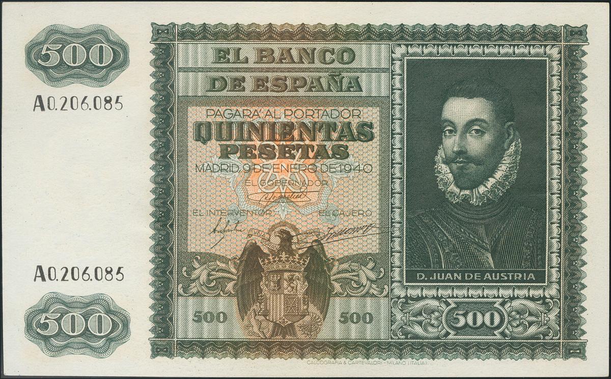 500 Pesetas. 9 de Enero de 1940. (doblez central) (Edifil 2017: 439). EBC-.