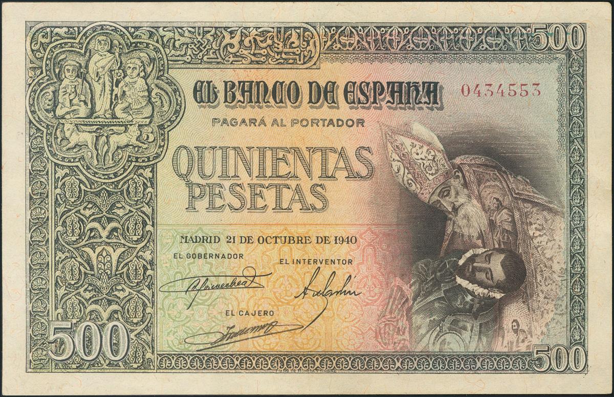 500 Pesetas. 21 de Octubre de 1940. (Edifil 2017: 444). MBC+.