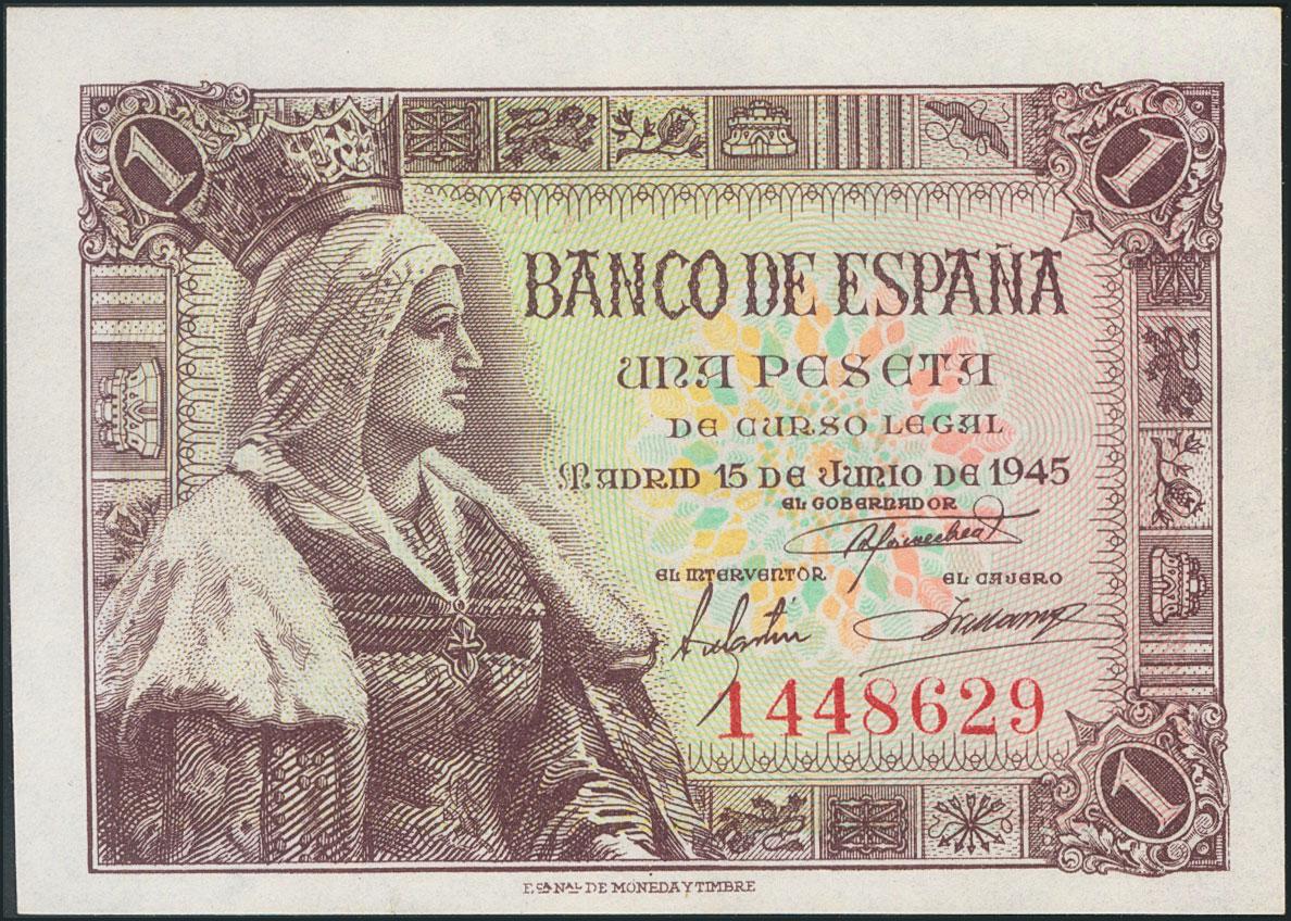 1 Peseta. 15 de Junio de 1945. Sin serie. (Edifil 448). SC.