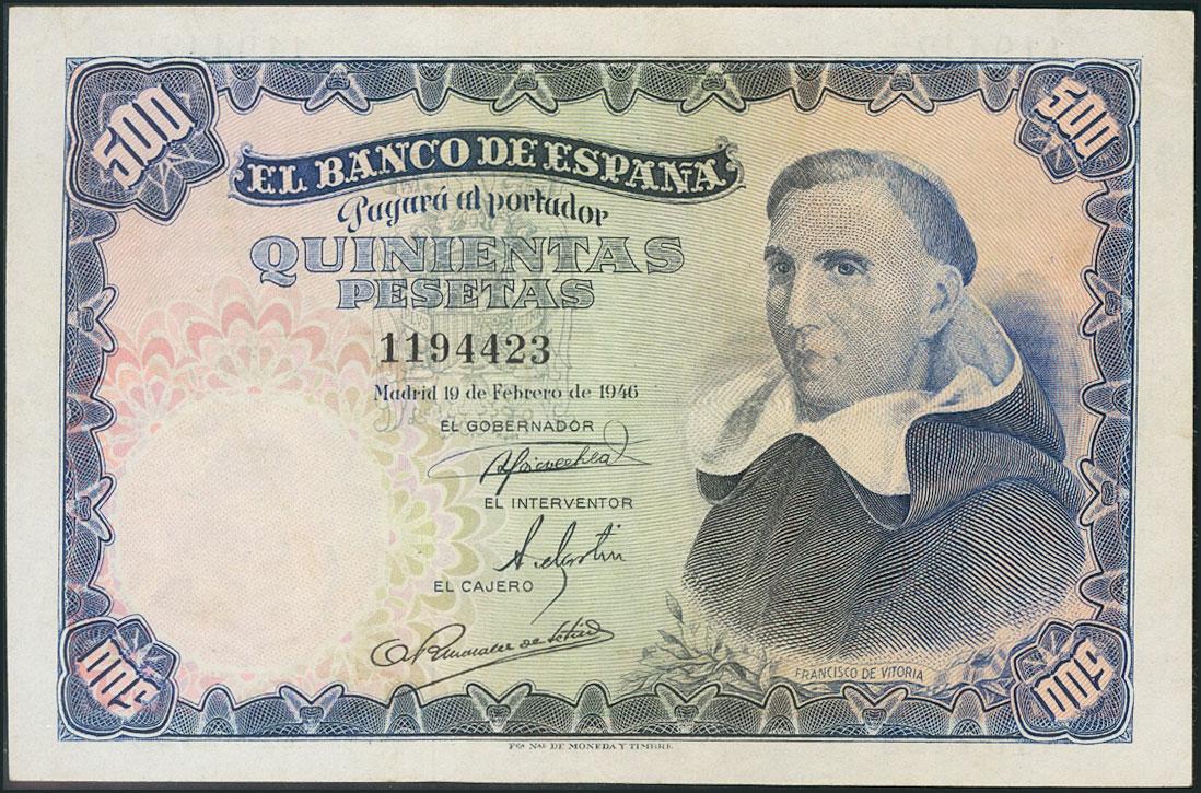 500 Pesetas. 19 de Febrero de 1946. (Edifil 2017: 452). EBC.