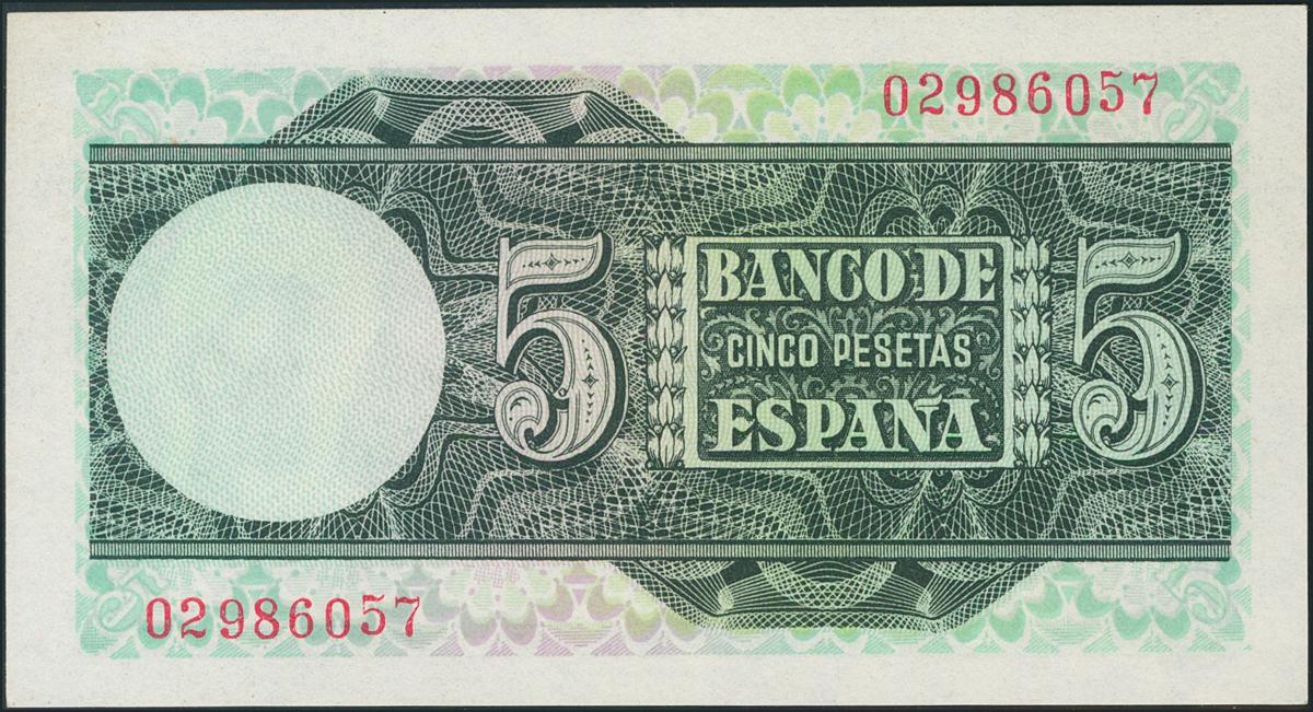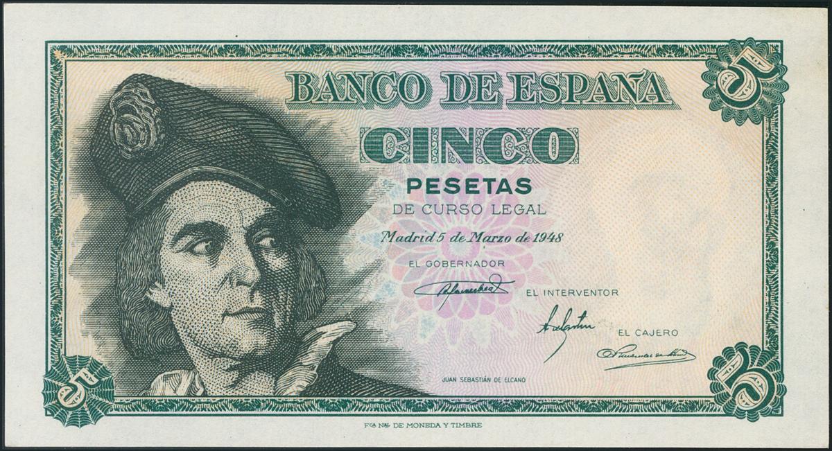 5 Pesetas. 15 de Marzo de 1948. Sin serie. (Edifil 2017: 455). SC.