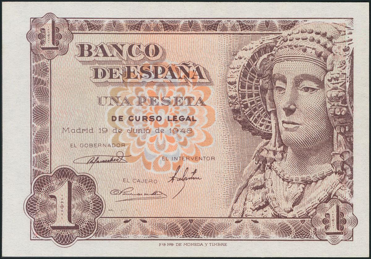 1 Peseta. 19 de Junio de 1948. Sin serie. (Edifil 457). SC.