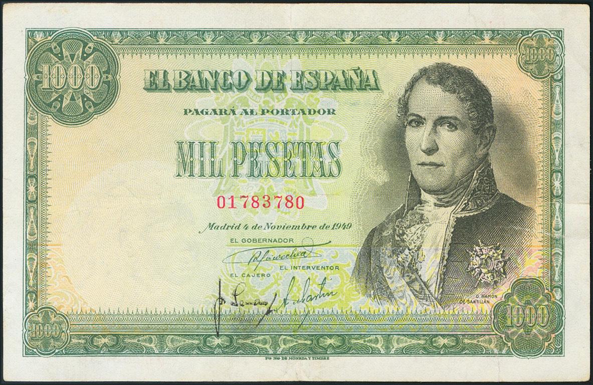 1000 Pesetas. 4 de Noviembre de 1949. (Edifil 2017: 458). MBC.