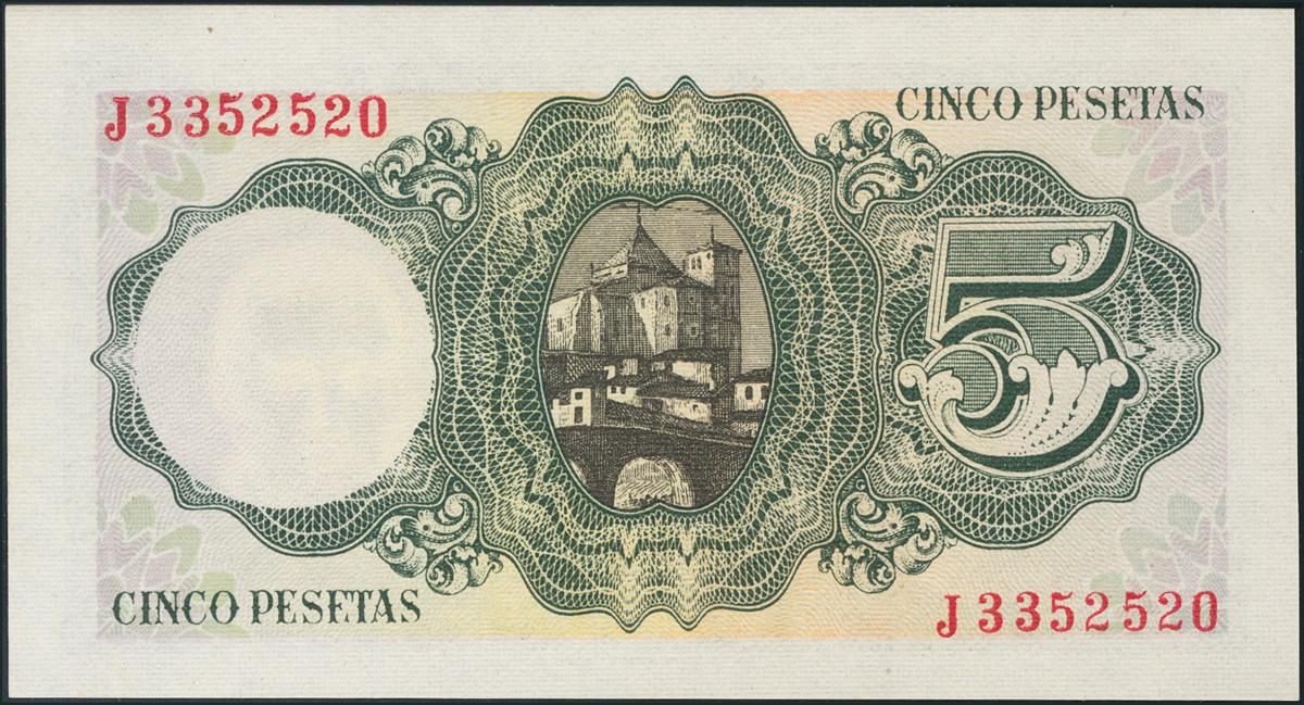 5 Pesetas. 16 de Agosto de 1951. Serie J. (Edifil 2017: 459a). SC.