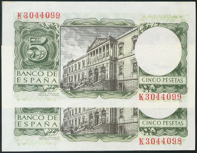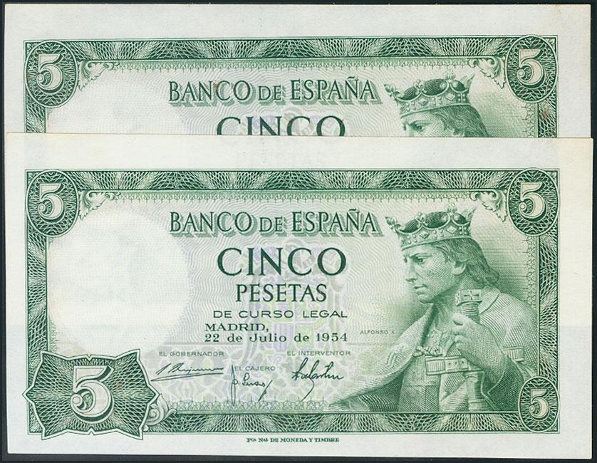 5 Pesetas. 22 de Julio de 1954. Serie K, pareja correlativa. (Edifil 2017: 466a). EBC++.