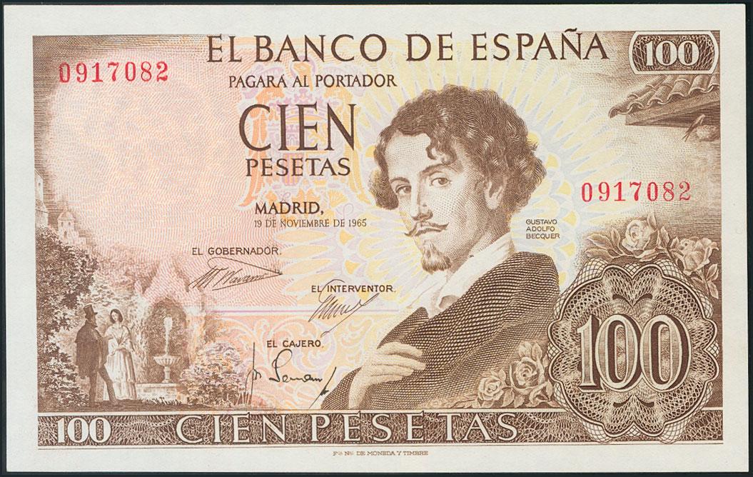 100 Pesetas. 19 de Noviembre de 1965. Sin serie. (Edifil 2017: 470). SC.