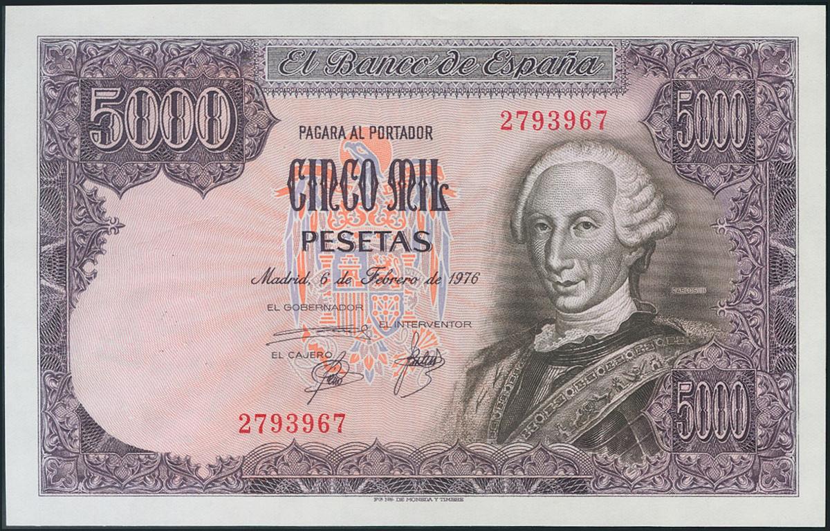 5000 Pesetas. 6 de Febrero de 1976. Sin serie. (Edifil 2017: 475). SC.