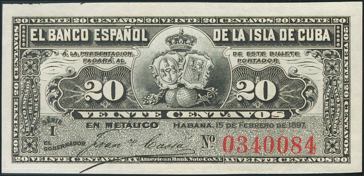 20 Centavos de Cuba. 15 de Febrero de 1897. (Edifil 2017: 85). SC.