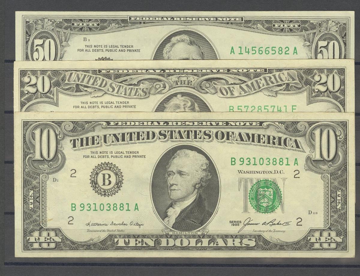 Conjunto de diversos billetes de dólares USA, el billete de 50 Dólares en conservación EBC. A EXAMINAR.