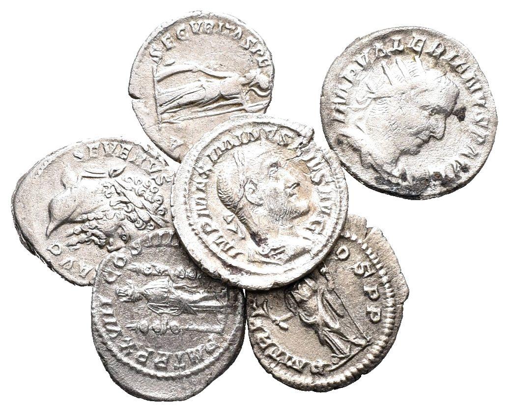 IMPERIO ROMANO. Lote compuesto por 6 Denarios. Maximino. Pax Augusti (RIC IV 2), Septimio Severo. Trofeo militar con cautivos (RIC 185), Alejandro Severo. Pax (RIC 40), Caracalla. Fides (RIC IV 267), Caracalla. Laodicea. Pallas (RIC 330) y Valeriano. Virtus (RIC V 266). BC/MBC. A EXAMINAR.
