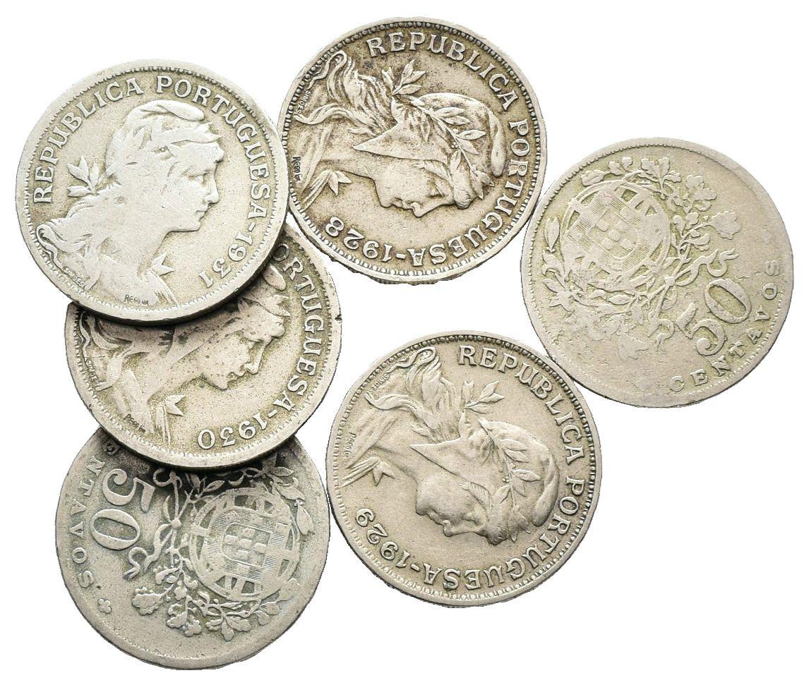 PORTUGAL. Lote compuesto por 6 monedas de 50 Centavos 1927, 1928, 1929, 1930, 1931 y 1935. Km#577. CuNi. BC+/MBC+. A EXAMINAR.