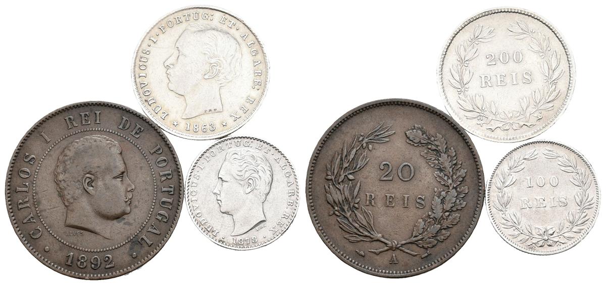 PORTUGAL. Lote compuesto por 3 monedas de Luis I y Carlos I. 20 Reis 1892 A. Gomes 03.04, 100 Reis 1878 y 200 Reis 1863. Gomes 09.14-10.03. Ar/Ae. MBC/MBC+. A EXAMINAR.