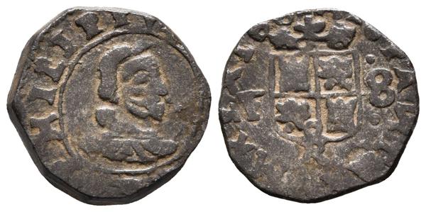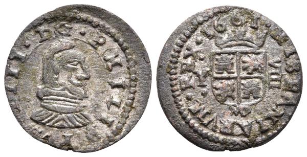 FELIPE IV. 8 Maravedís. 1661. Madrid Y. Corona con base visible. Cal-1420; J.S. M-301. Ae. 2,45g. Conserva el plateado original. MBC+.