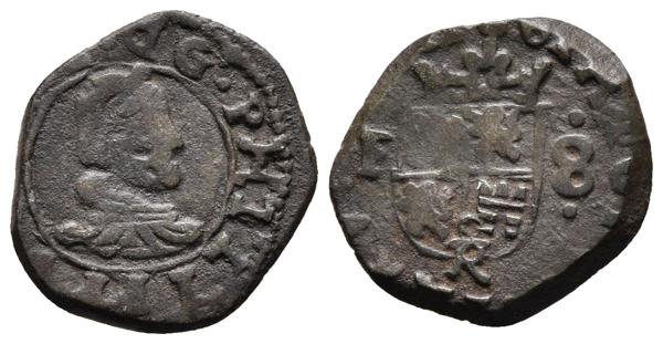 FELIPE IV. 8 Maravedís. 1661. Trujillo F. Acuñada a martillo con N girada en reverso. Cal-1637; J.S. M-726. Ae. 2,55g. MBC. Escasa.
