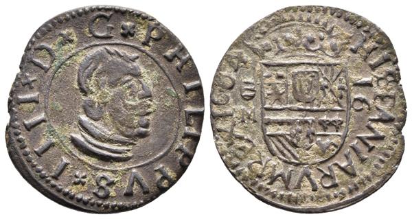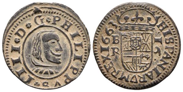 FELIPE IV. 2 Maravedís. 1663. Madrid Y. Cal-1459; J.S. M-477. Ae. 0,47g. MBC+. Escasa.