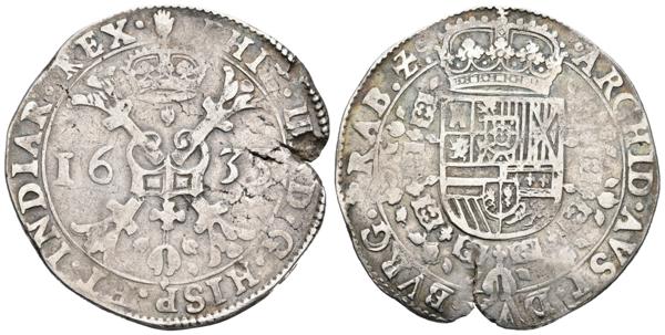 FELIPE IV. 1 Patagón. 1633. Amberes. Vti. 939; Vanhoudt 645.AN; Van Gelder & Hoc 329-1. Ar. 27,56g. MBC.