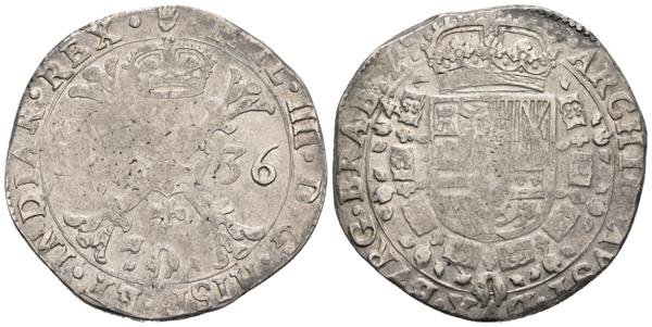 FELIPE IV. 1 Patagón. 1636. Amberes. Vti. 942; Vanhoudt 645.AN; Van Gelder & Hoc 329-1. Ar. 28,06g. MBC.