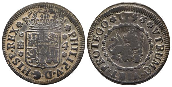 FELIPE V. 4 Maravedís. 1743. Segovia. Cal-1994. Ae. 6,04g. MBC-.