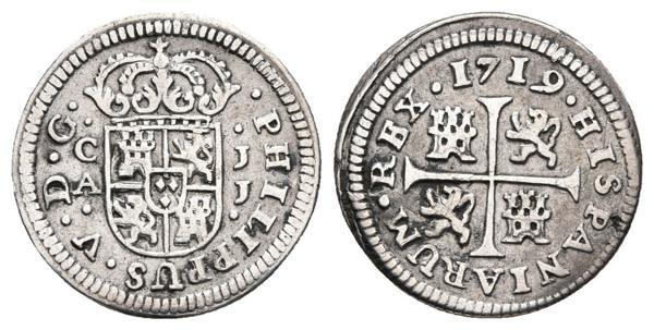 FELIPE V. 1/2 Real. 1719. Cuenca JJ. Cal-1733. Ar. 1,49g. MBC-.