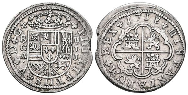 FELIPE V. 2 Reales. 1718. Cuenca JJ. Cal-1161. Ar. 5,71g. MBC+/MBC.
