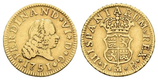 FERNANDO VI. 1/2 Escudo. 1751. Madrid JB. Cal-247. Au. 1,73g. BC+.