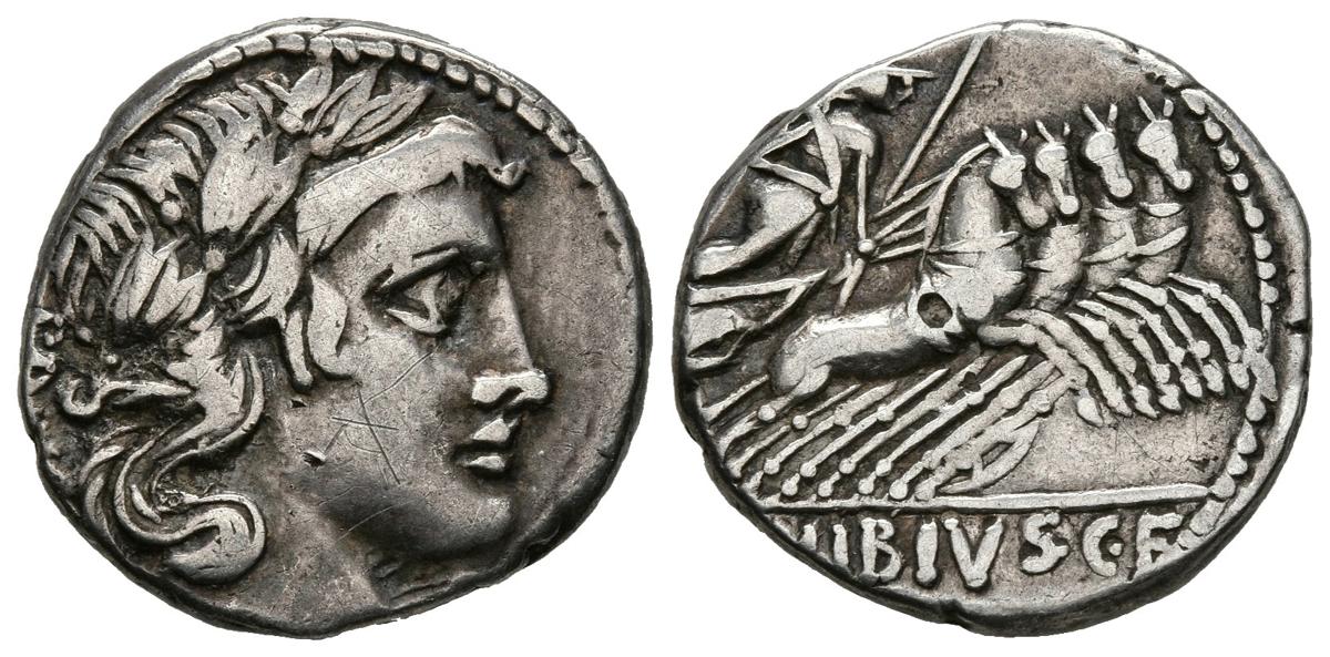 GENS VIBIA. Denario. (Ar. 3,93g/17mm). 90 a.C. Taller auxiliar de Roma. (Crawford 342/5c; FFC 1187). MBC.