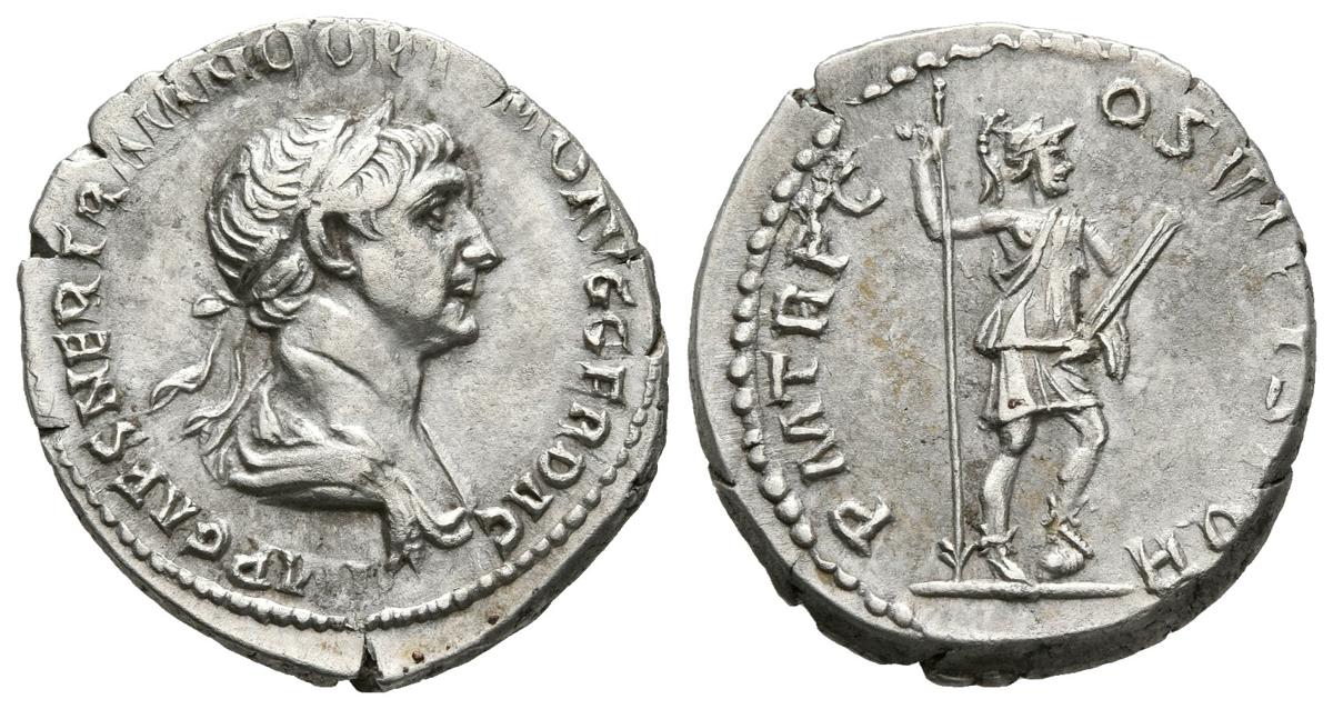 TRAJANO. Denario. (Ar. 3,02g/19mm). 116-117 d.C. Roma. (RIC 353). EBC-. Exceso de metal en reverso. Bonito ejemplar.