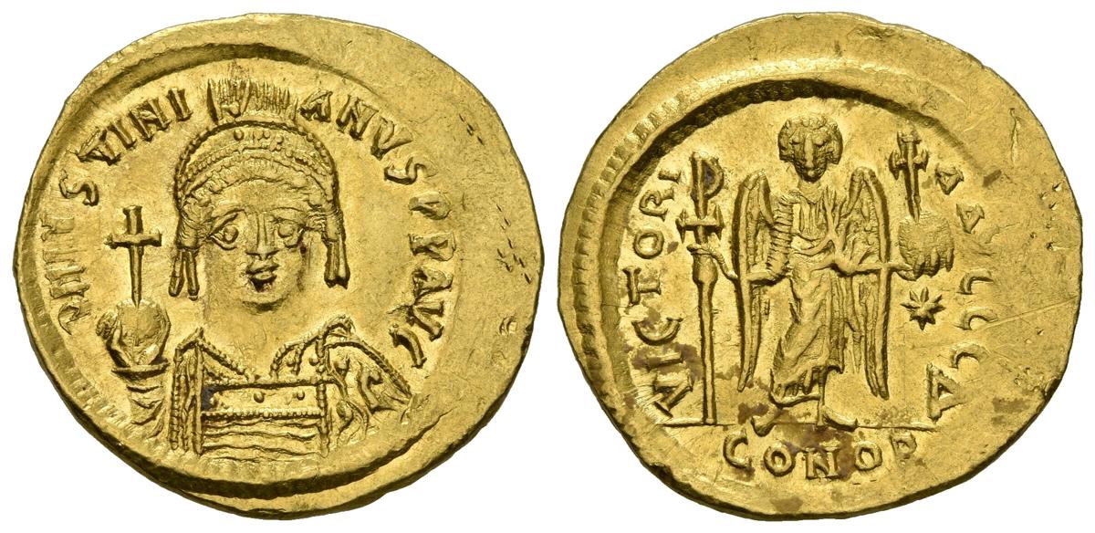 JUSTINIANO I. Sólido. (Au. 4,48g/21mm). 537-542 d.C. Constantinopla. (Sear 140). MBC+.