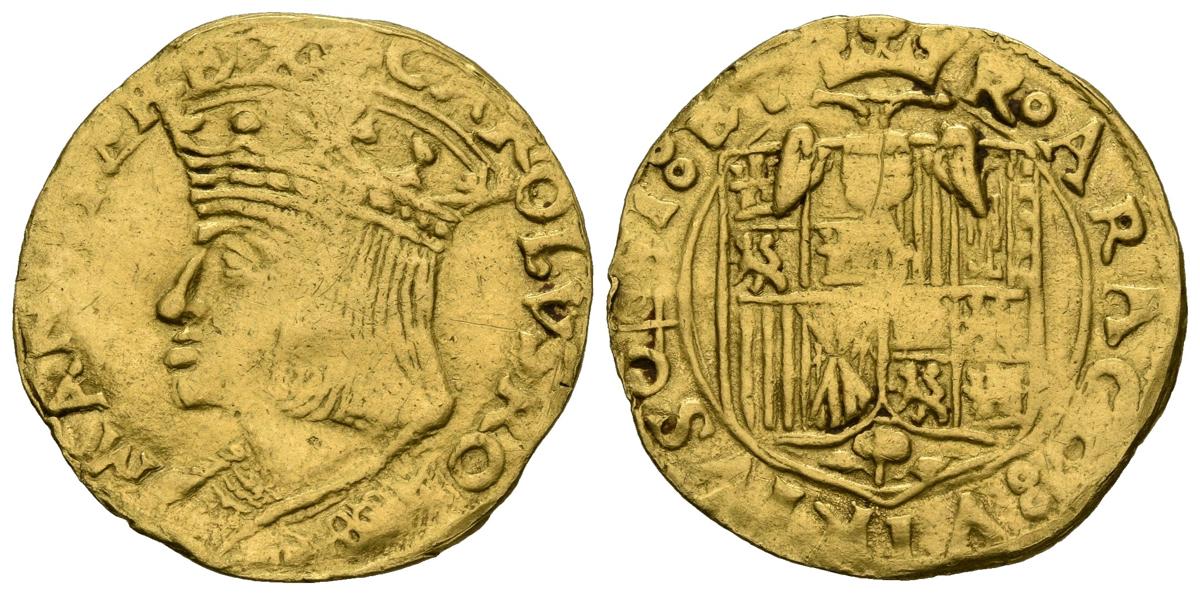 Carlos I de España, V de Alemania pero también, aunque menos conocido, IV de Nápoles acuñó este magnífico Ducado durante el primer cuarto del siglo XVI. Estamos ante una pieza donde la simbología está presente en todo momento, destacando la leyenda imperial Rey de Romanos en el anverso y la heráldica del reverso, directamente heredada de Fernando el Católico, como rey de Nápoles, a la que sólo se ha añadido el águila bicéfala y el escusón de los Austrias en el pecho de la misma. Además, la misma leyenda del reverso destaca por la novedosa alusión al Reino de las Dos Sicilias, título que englobaba a los Reinos de Nápoles y Sicilia.