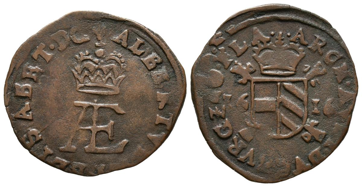 ARCHIDUQUES ALBERTO E ISABEL (1598-1621). Doble Dinero (Ae. 2,19g/23,1mm). 1616. Brujas. (Vti. 48). MBC.