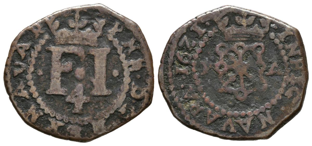 FELIPE III (1598-1621). 4 Cornados. (Ae. 2,99g/22mm). 1621. Pamplona. (Cal-2019-80). MBC-.