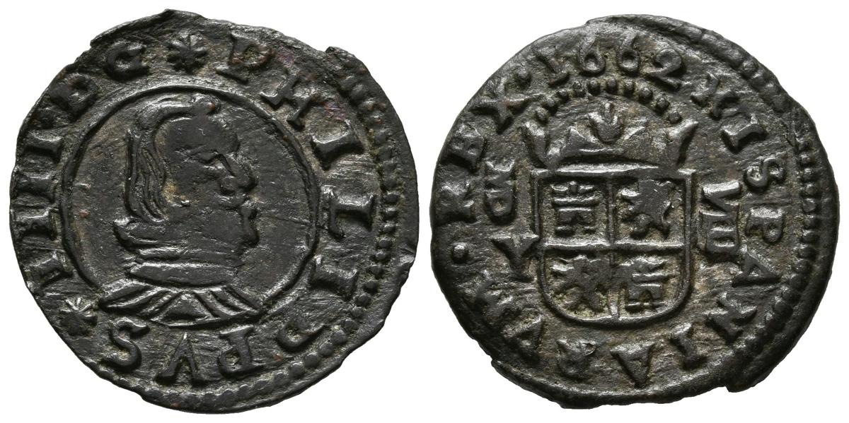 FELIPE IV (1621-1665). 8 Maravedís. (Ve. 2,49g/22mm). 1662. Madrid Y. (Cal-2019-361). Ceca invertida. MBC+.