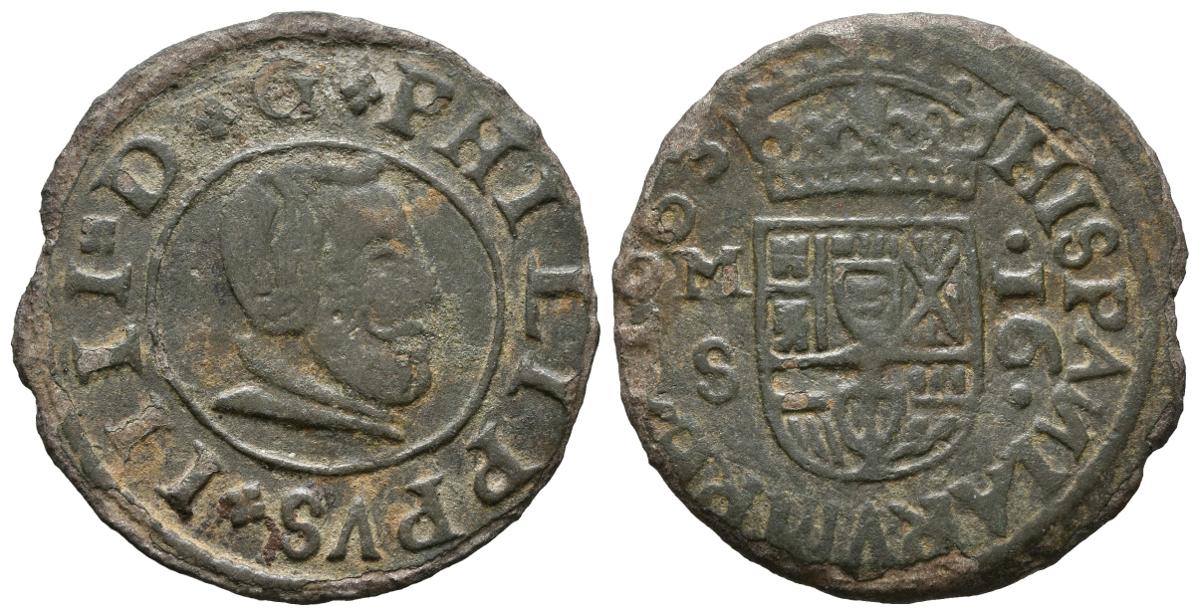 FELIPE IV (1621-1665). 16 Maravedís. (Ae. 2,91g/25mm). 1663. Madrid S. (Cal-2019-475). MBC.