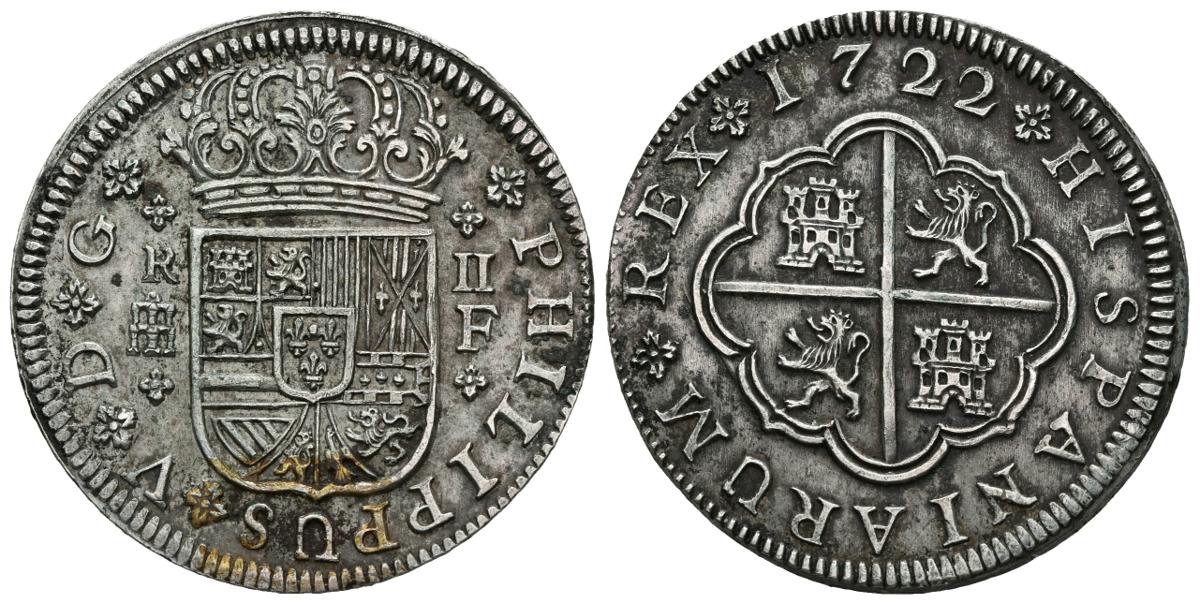 FELIPE V (1700-1746). 2 Reales (Ar. 5,67g/27mm). 1722. Segovia F. (Cal-2019-956). MBC+. Bonito ejemplar.