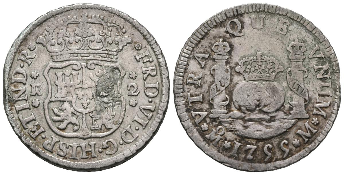 FERNANDO VI (1746-1759). 2 Reales. (Ar. 6,62g/27mm). 1755. México M. (Cal-2019-297). MBC-.