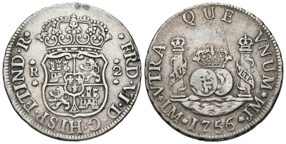 FERNANDO VI (1746-1759). 2 Reales. (Ar. 6,60g/27mm). 1759. Lima JM. (Cal-2019-273). MBC-. Rayitas por limpieza.